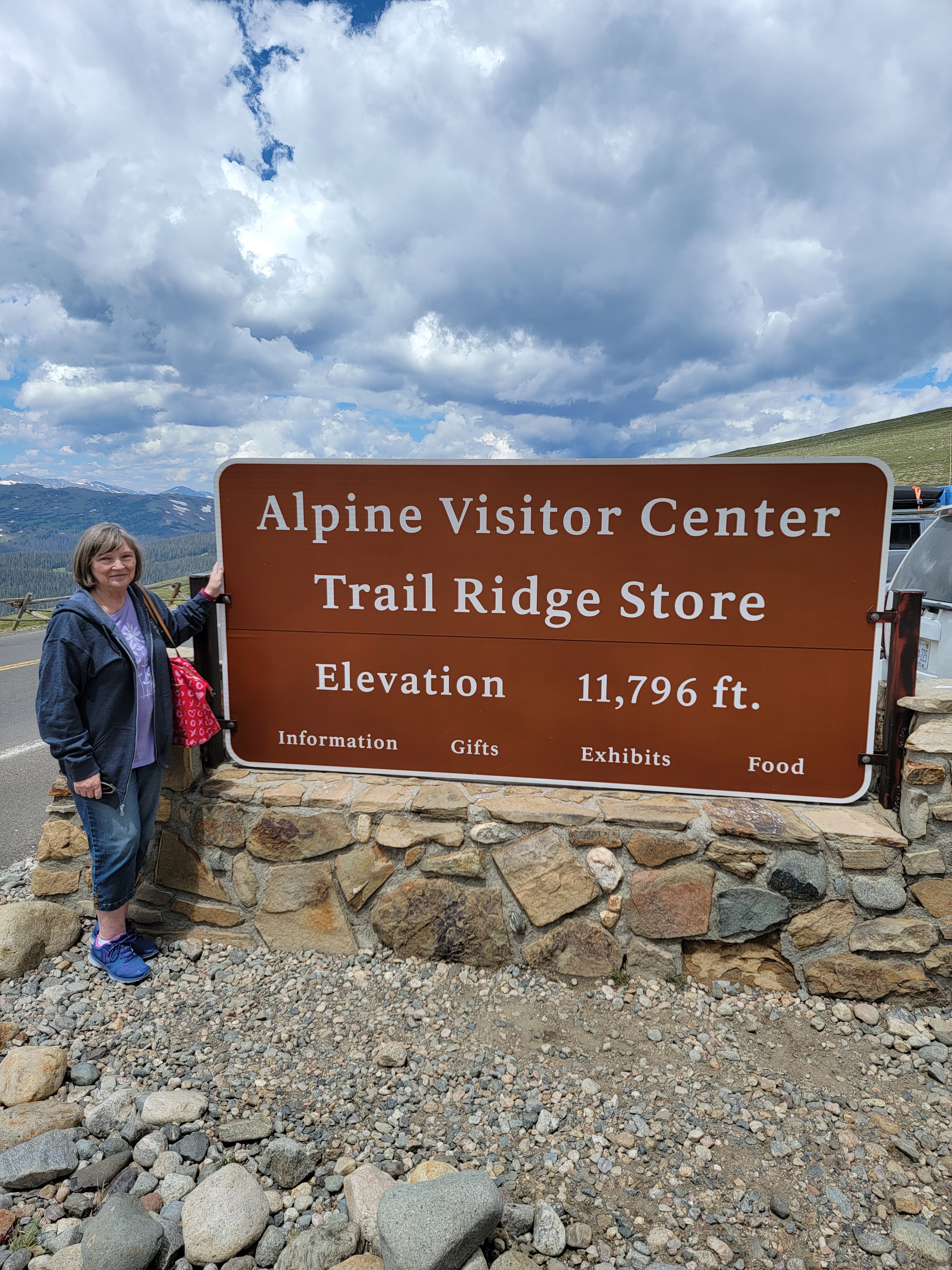 Still on eastern daylight time, we were all awake before the 6am alarm went off. On the road by 7:15am, we headed for Estes Park, CO. Once there we went to Kind Coffee for breakfast, met a few friendly dogs and their people, and then walked around town a bit. Margo saw these wonderful lamps made from fallen aspen tree trunks and we ended up buying one and having it shipped home. A few more souvenirs later and it was time to head into the park - we had a timed pass to enter between 11am and 1pm, a pilot program started last year to try to manage the number of visitors within the park. It seemed to us that it worked pretty well because it didn't seem crowded at all, despite all the news stories about the national parks being jammed this summer. (More on that later...) We drove up Fall River Road to Trail Ridge Road and kept climbing until we reached the Alpine Visitor's Center at 11,796 ft altitude, stopping once to look over the valley below Many Parks Curve. After taking in the view from there, we made lunch in the RV before descending Trail Ridge Road on the west side of the mountains. Trail Ridge Road is closed most of the year because of deep snow and is passable only in the summer months - it was closed as recently as May because of last spring snow. There are multiple switchback turns on the way down but the RV handled well and we had no problem getting down the other side. As we approached Grand Lake, CO we could see the devastation from last year's wild fires - acres and acres of burned tree trunks and scarred land. Oh, and we also stopped to watch a bull elk with gorgeous antlers cross the road in front of us, and later saw a female moose browsing off the side of the road! Once we reached Granby, CO, it was a long haul to Lander, WY and the Sleeping Bear RV Park and Campground. We hooked up the electricity and filled the water tank and made our first dinner in the motorhome. Time to rest up for the drive to Grand Teton National Park in the morning!